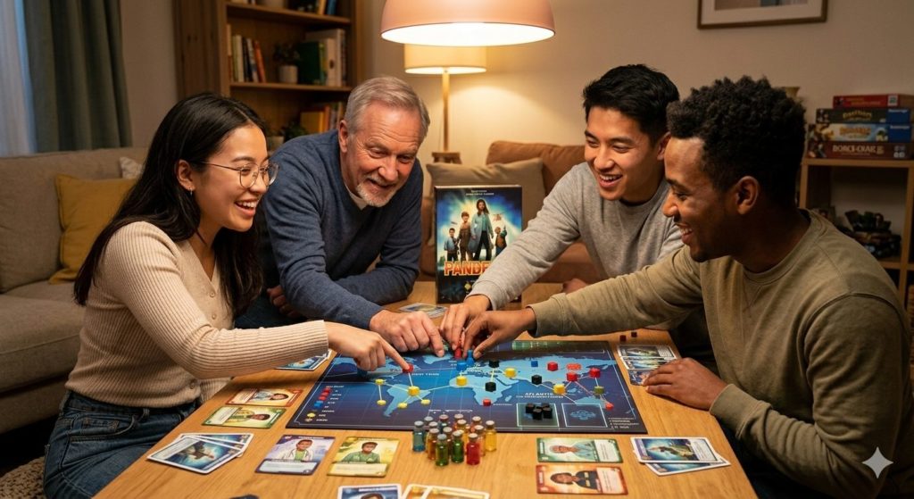 「科学者がいるなら、カードを集める担当は科学者に一任しよう」「衛生兵がいるなら、治療は任せて他は移動に集中しよう」というように、チームとして誰が何を担うかをこの場で言葉にしておくだけで、全員が自信を持って最初の手番を動けるようになります。「自分がチームに貢献できている」という感覚が、パンデミックの協力体験を最高のものにする原動力です。